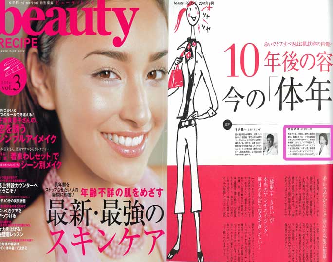 「beauty-RECIPE vol.3」の企画「10年後の容姿は今の体年齢で決まる」として体の内側からのアンチエイジング法について衣理クリニック表参道(エリクリニック)院長 片桐衣理がアドバイスしています。