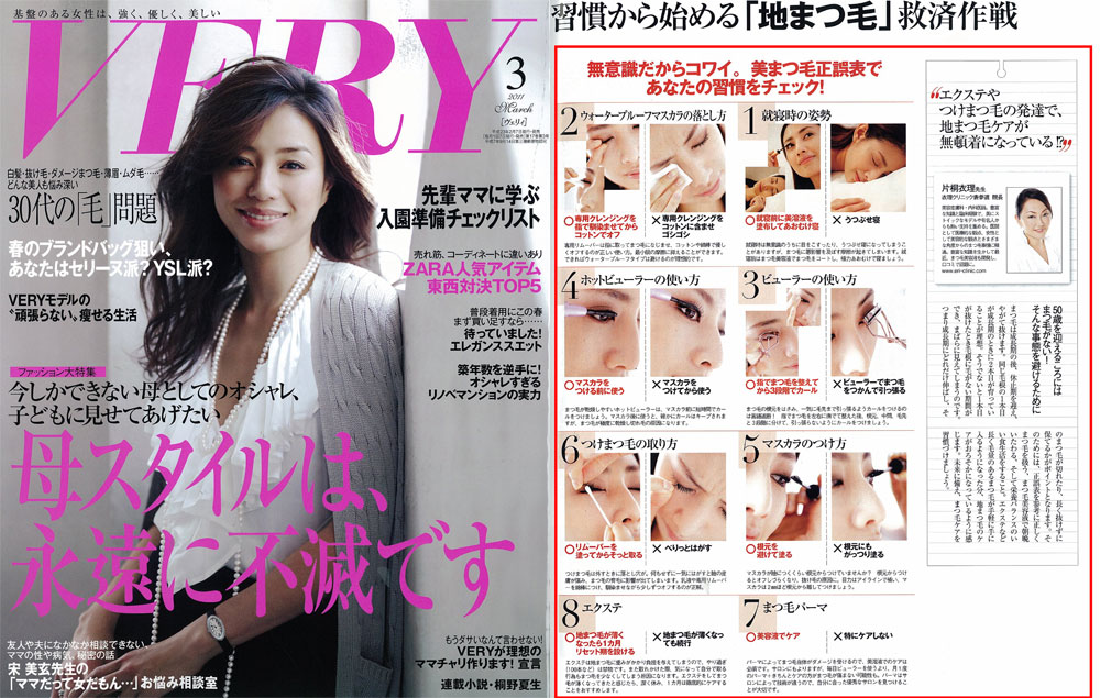 『VERY』3月号、【30代の「毛」問題】のまつ毛の項にて、衣理クリニック表参道院長 片桐衣理が、地まつ毛ケアについてコメントさせて頂きました。また、院長 片桐がプロデュースしたドクターズコスメ“イースペシャル”より「ドラマティカルアイラッシュトリプルアクション」が掲載されました。読者の方がお試いただいた様子も掲載されておりますので、是非、ご覧下さいませ。