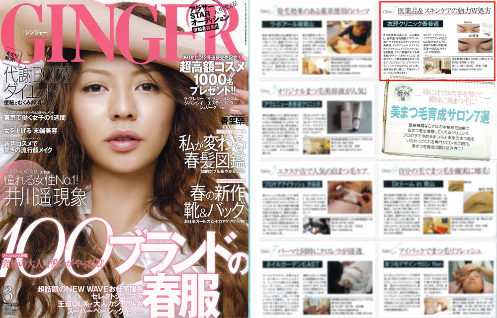 『GINGER』3月号に衣理クリニック表参道が紹介されました