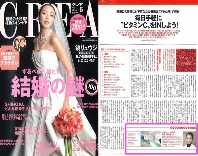 「CREA6月号」企画「毎日手軽に“ビタミンC”をINしよう!」の中で、衣理クリニック表参道(エリクリニック)院長 片桐衣理が「ビタミンCが美容&健康にいい理由」等について、コメントをしています。