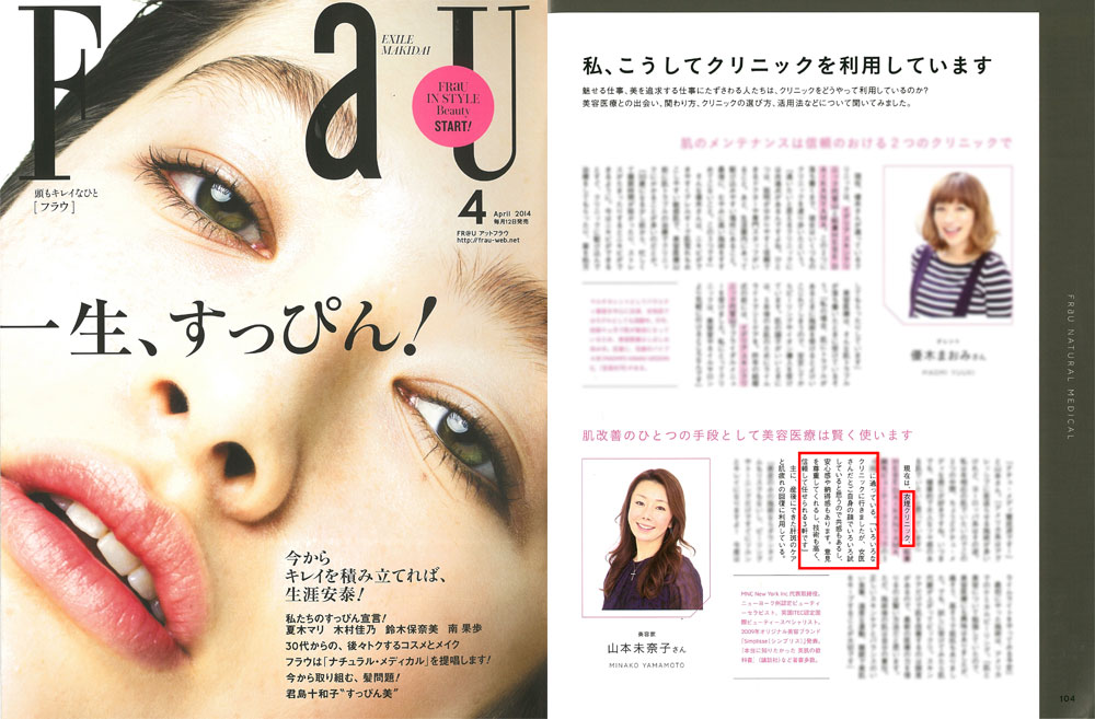 『FRaU』4月号、「私、こうしてクリニックを利用しています」にて、美容家の山本未奈子さんが、通っているクリニックの一つとして衣理クリニック表参道をご紹介くださいました。是非、ご覧下さいませ。