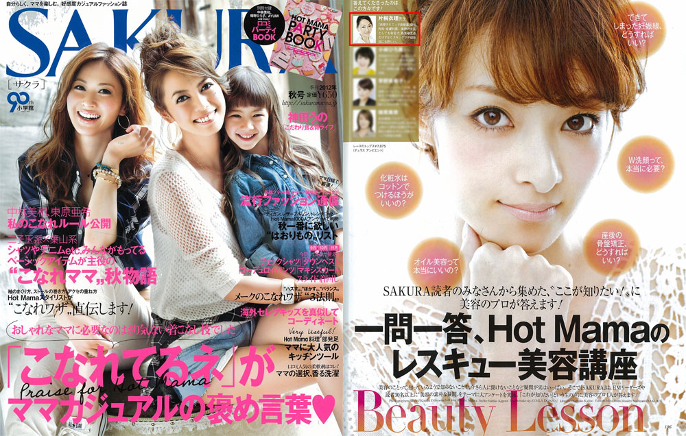 『SAKURA』秋号、「一問一答、HotMamaのレスキュー美容講座」にて、衣理クリニック表参道院長 片桐衣理が、スキンケアやボディケアなど“美容の素朴な疑問”について回答させて頂きました。