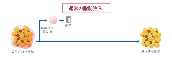 自身から採取した脂肪を良質な脂肪のみに分離し、気になる深いシワやくぼみ・凹みに注入することで肌にハリをもたせ改善させる方法です。