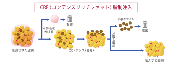 当院では従来の脂肪採取・注入よりも脂肪の質と安全面が優れているコンデンスリッチファットを導入。より高い定着率を実現し、FDA認可の「LIPOMAX-SC」と特殊なウェイトフィルターを使用することで脂肪幹細胞の多い良質な脂肪のみをお肌に戻していくことが可能に。
